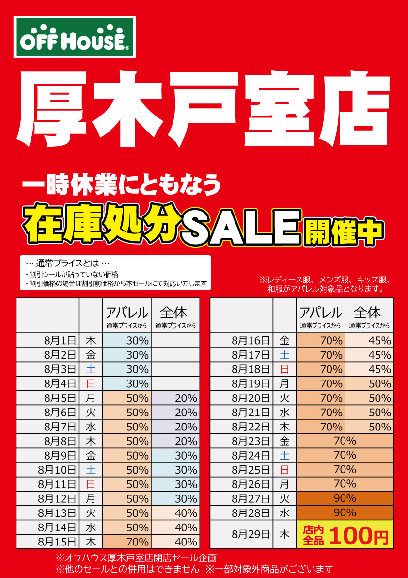 厚木戸室一時閉店セール(他店告知用)