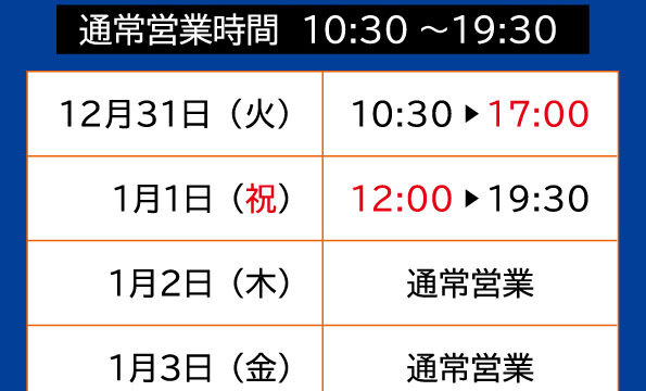 年末年始営業時間(2024年元旦) 年末年始営業時間 2023-12-162023-12-23 2024年1月(HO)OL 2024年1月(HOOH)OL 2024年1月(HOOHHB)OL 2024年1月(HOHB)OL 2024年1月(OH)OL 2024年1月(HB)OL 2024年1月(OSHB)OL 2024年1月(戸室)OL 2024年1月(高座)OL 2024年1月(楢原)OL 2024年1月(肆番)OL