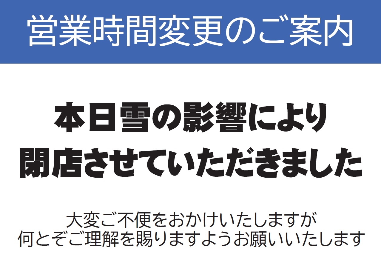 雪のため閉店