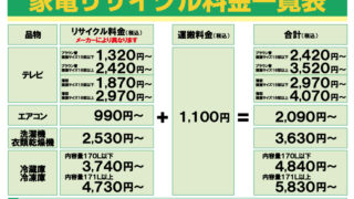 家電リサイクル料金202404(オフハウスカラー)