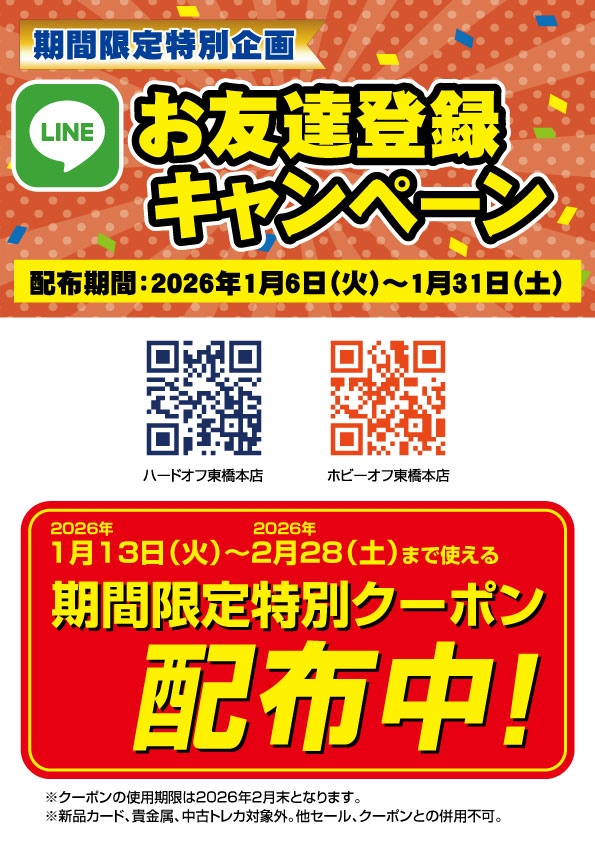 LINE特別クーポン【東京西限定】 LINE 2025.12.262025.12.29 LINE特別クーポン_HB羽村OLダウンロード LINE特別クーポン_HOOH羽村OLダウンロード LINE特別クーポン_HOあきる野OLダウンロード LINE特別クーポン_OHあきる野OLダウンロード LINE特別クーポン_下九沢OLダウンロード LINE特別クーポン_高麗川OLダウンロード LINE特別クーポン_神明台OLダウンロード LINE特別クーポン_青梅OLダウンロード LINE特別クーポン_多摩和田OLダウンロード LINE特別クーポン_町田木曽OLダウンロード LINE特別クーポン_東橋本OLダウンロード LINE特別クーポン_楢原OLダウンロード LINE特別クーポン_入間OLダウンロード LINE特別クーポン_矢部OLダウンロード ※2025/12/29 対象外に「中古トレカ」を追記しました。