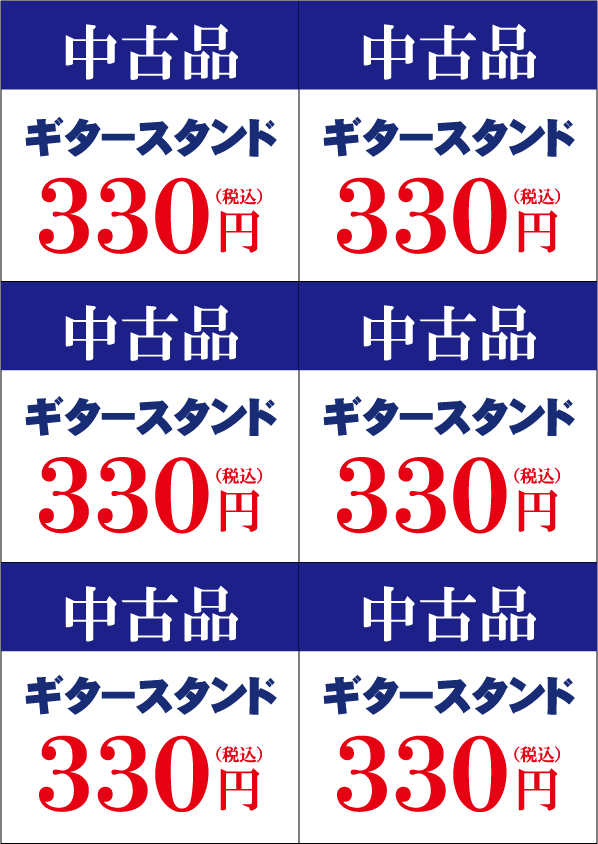 ギタースタンド(中古品) ハードオフ 2023.07.03 ギタースタンドOL ギタースタンド 【ご利用イメージ】 ※6等分に切断してください ※品数がある場合はラミネートをして使い回してください ※上部に穴をあけて 綴じ紐で吊るしてご使用ください