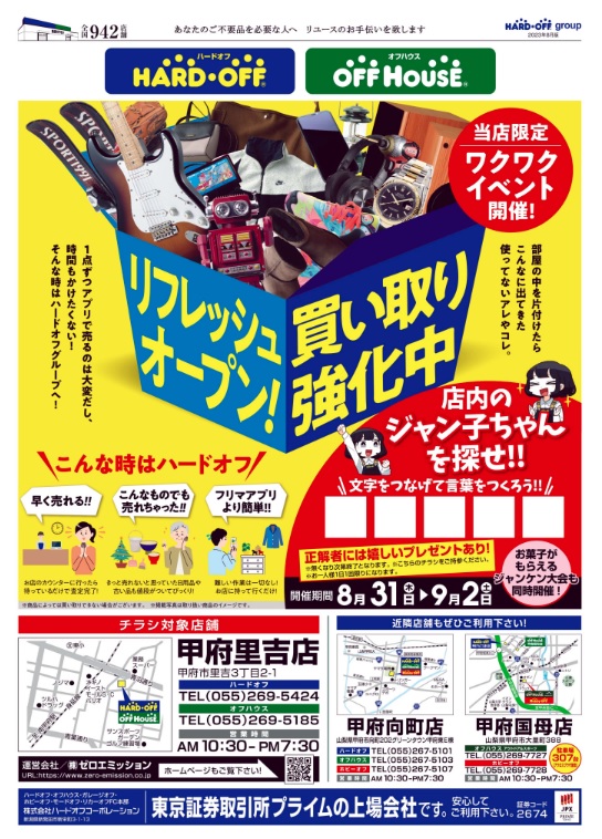 REコンテストチラシ一覧 2023.10.18 HOあきる野店 OHあきる野店 アクロスプラザ山梨店 つきみ野店 綾瀬店 伊勢原店 稲城矢野口店 横浜市ヶ尾店 横浜長津田店 横浜緑園都市店 茅ヶ崎店 厚木戸室店 甲斐双葉店 甲府アルプス通り店 甲府向町店 甲府昭和店 甲府里吉店 高座渋谷店 高麗川店 小平上水店 秦野渋沢店 町田木曽店 東橋本店 東大和店 藤沢店 入間藤沢店 八王子めじろ台店 八王子大和田店 八王子楢原店 八王子堀之内店 平塚四之宮店 本厚木一番街店 立川栄店 立川西砂店 HB羽村店 河口湖店 花小金井店 小金井店 青梅新町店 東村山店 相模原下九沢店 相模原矢部店 多摩和田店 中央林間りんかんモール店 羽村店 羽村神明台店 ホーム ホーム 検索 トップ サイドバー